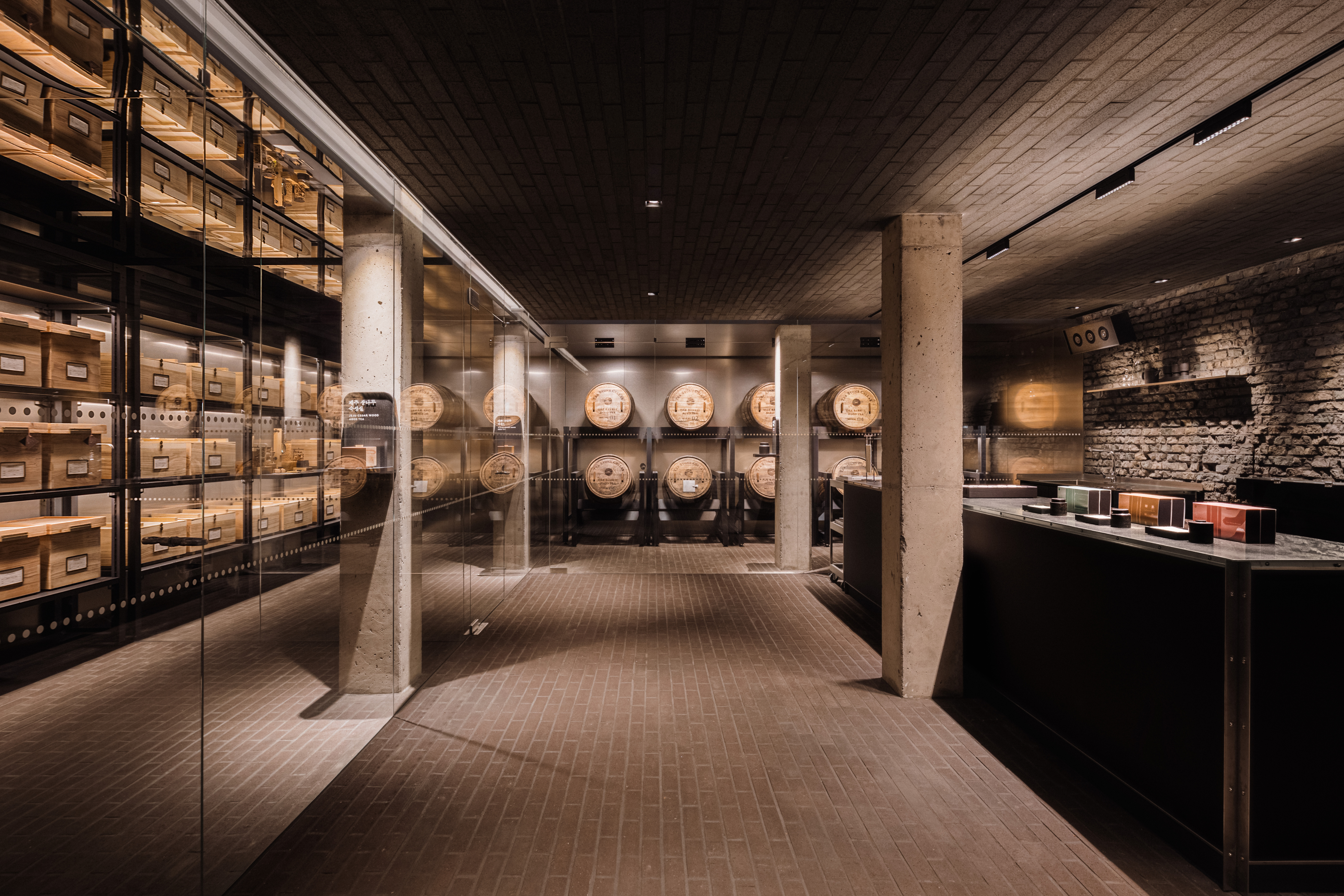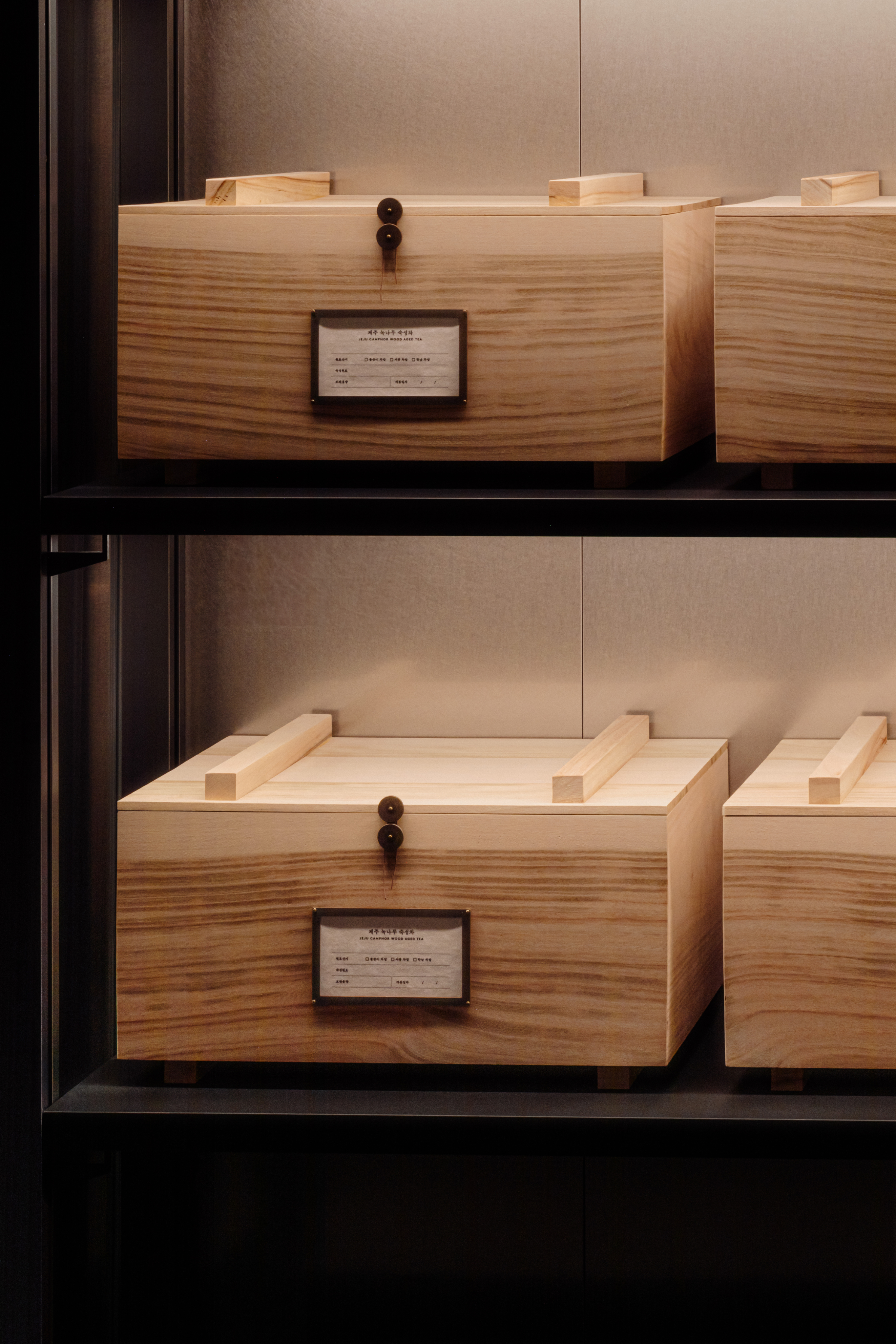 오설록 티스톤 셀러는 제주의 자연과 인고의 시간이 만나 차가 깊어지는 과정을 담아낸 차 숙성 공간입니다. '벼루가 되어가는 서사'를 품은 티스톤의 하층에 위치하여, 어둠과 온기 속에서 차가 완성되는 신비로운 분위기를 연출합니다.