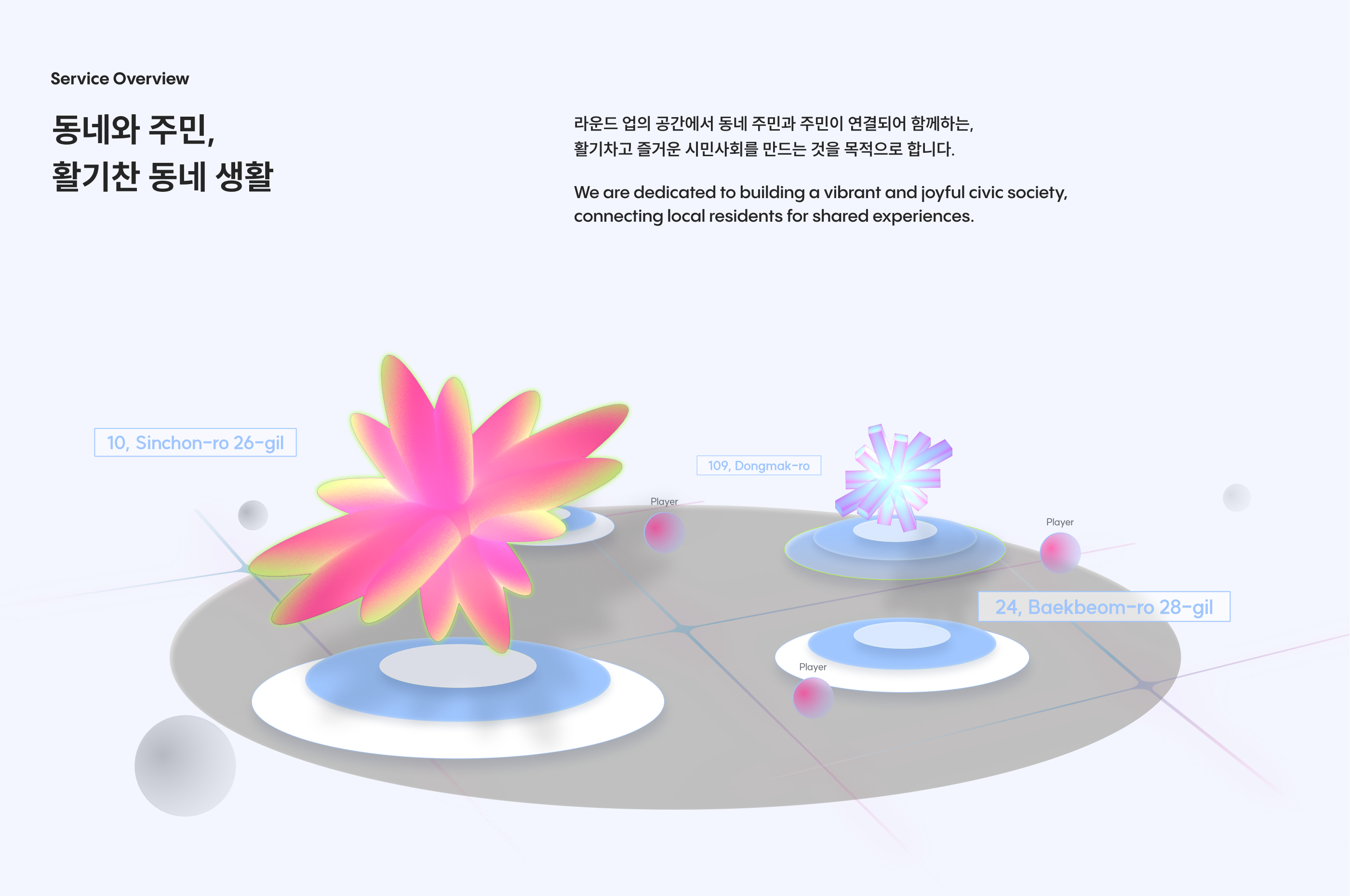 Round-Up은 우리가 살고 있는 익숙한 동네를 새로운 놀이터로 재탄생시키는 XR(확장 현실) 기반의 동네 액티비티 플랫폼입니다. '흩어져 있는 것들을 하나로 불러 모으다'라는 의미의 이름처럼, 지역 사회의 다양한 즐길 거리와 사람들을 기술을 통해 연결하는 것을 목표로 합니다.