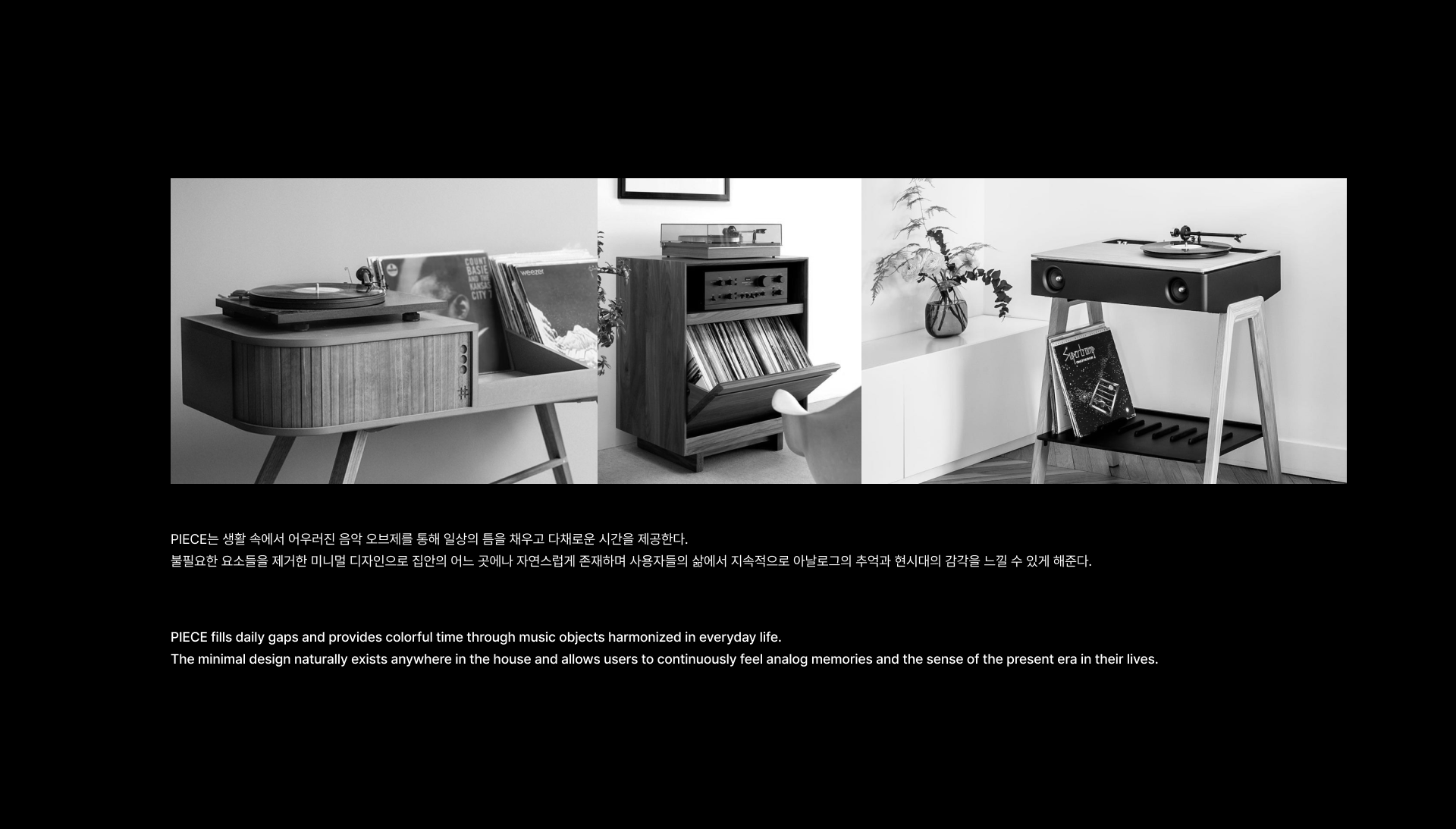 PIECE fills daily gaps and provides colorful time through music objects harmonized in everyday life. The first start, OP.1 is an LP turntable used at home, allowing you to experience a vivid sound experience that captures the eras in a daily space.